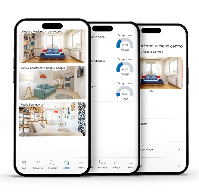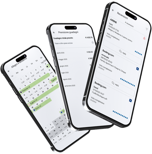 Ti offriamo un’App semplice e intuitiva che ti permette di gestire tutto in autonomia: prezzi, disponibilità, prenotazioni, messaggi con gli ospiti, recensioni, guadagni in tempo reale e documenti contabili.
